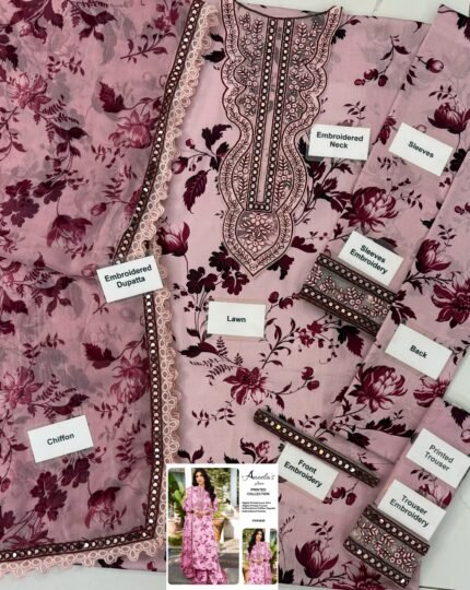LAWN embroidery Suit With CHIFFON embroidered Dupatta
