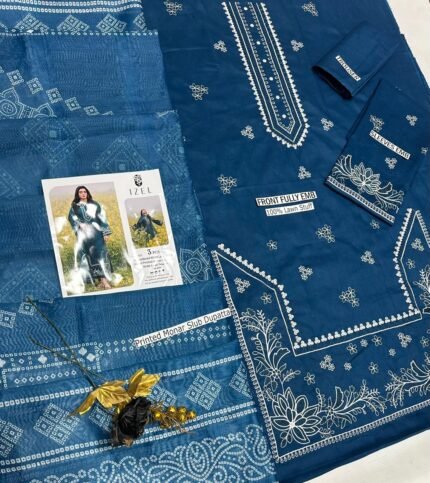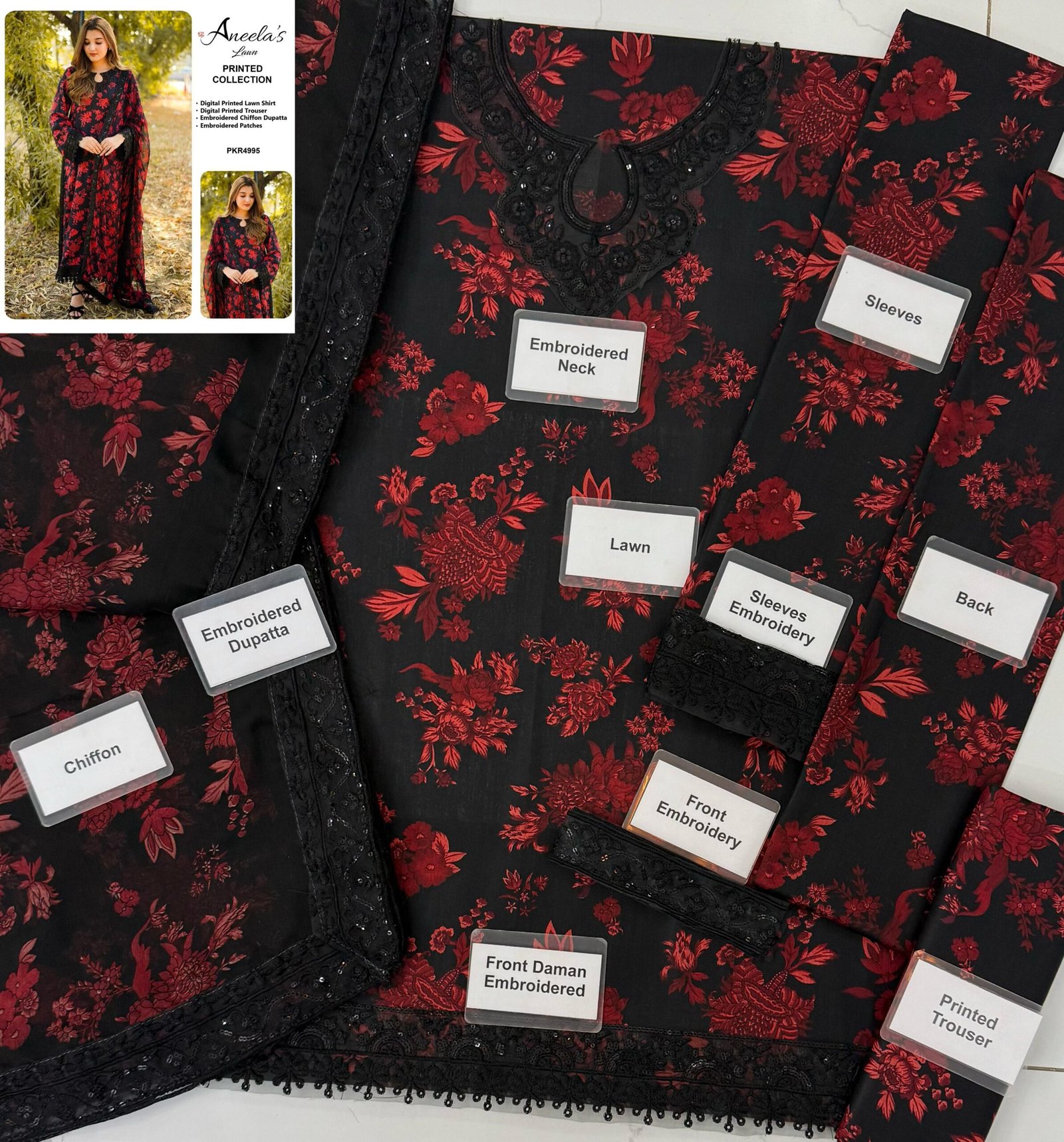 ANEELA’S Luxury unstitched 3pc Embroidery Lawn suits Printed Shafon dupatta