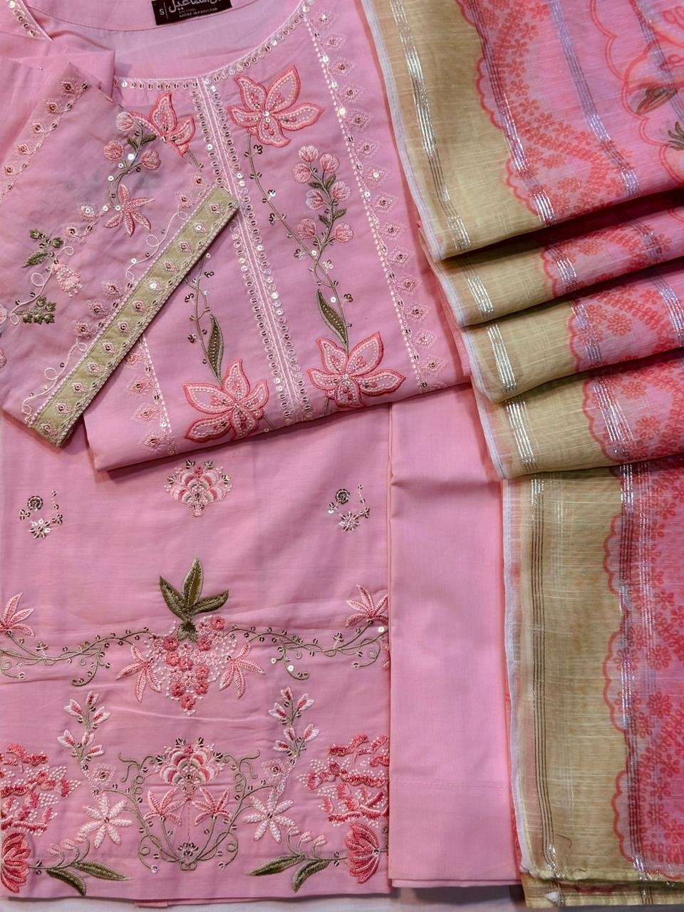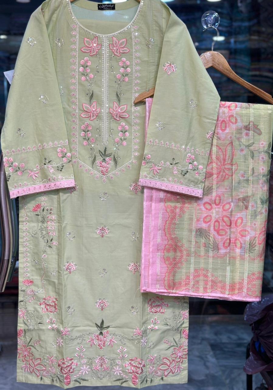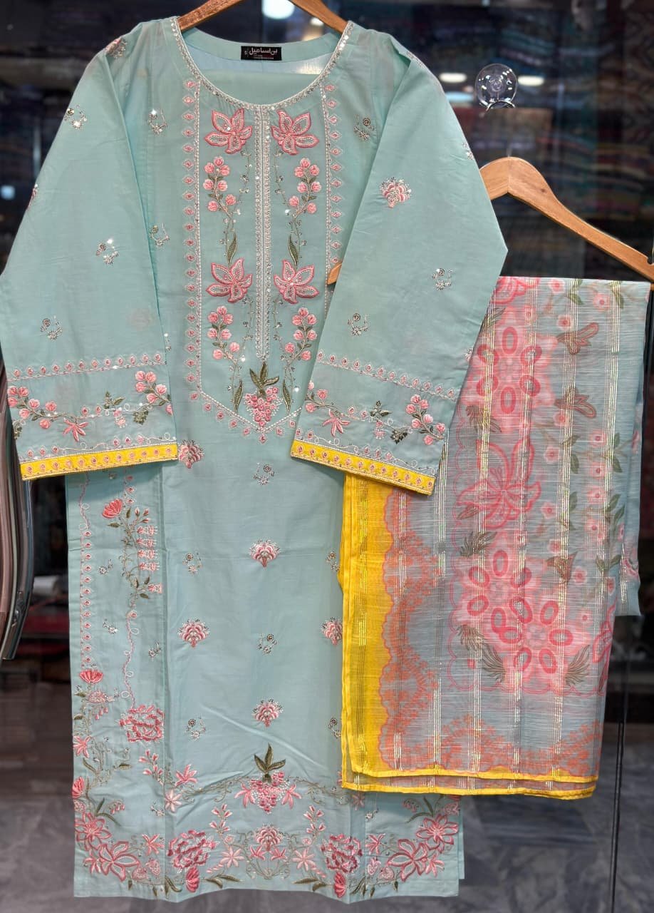 ●Heavy Embroidered Shirt on Premium Plain Dyed Lawn