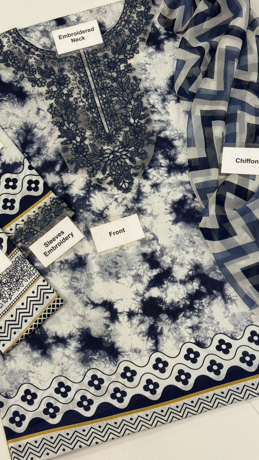 Elegant Lawn Suit with Chiffon Dupatta – Printed & Embroidered Design
