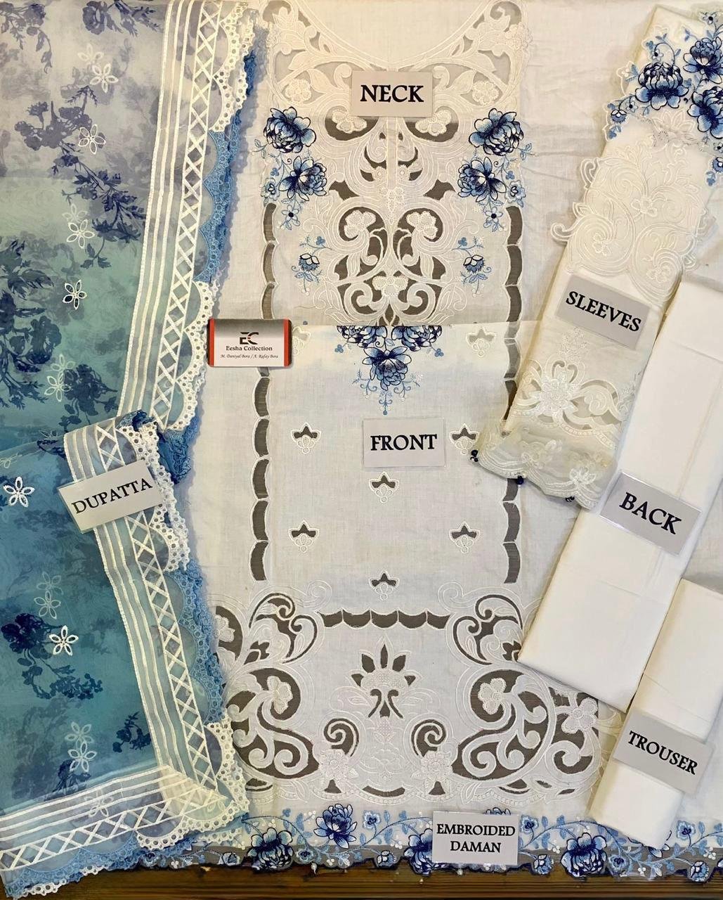 SOFT COTTON FULLY HEAVY EMBROIDERED SELEEVES WITH ORGANZA EMBROIDERED ON FABRIC