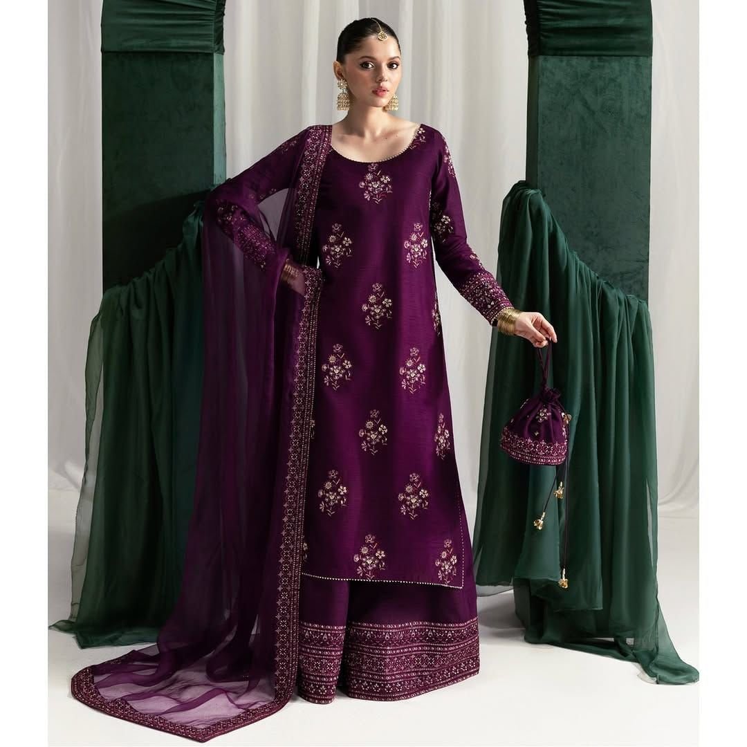 DUPATTA HIGH QUALITY SOFT BEMBER CHIFFON EMB DUPATTA WITH PALLU EMB BUNCHES