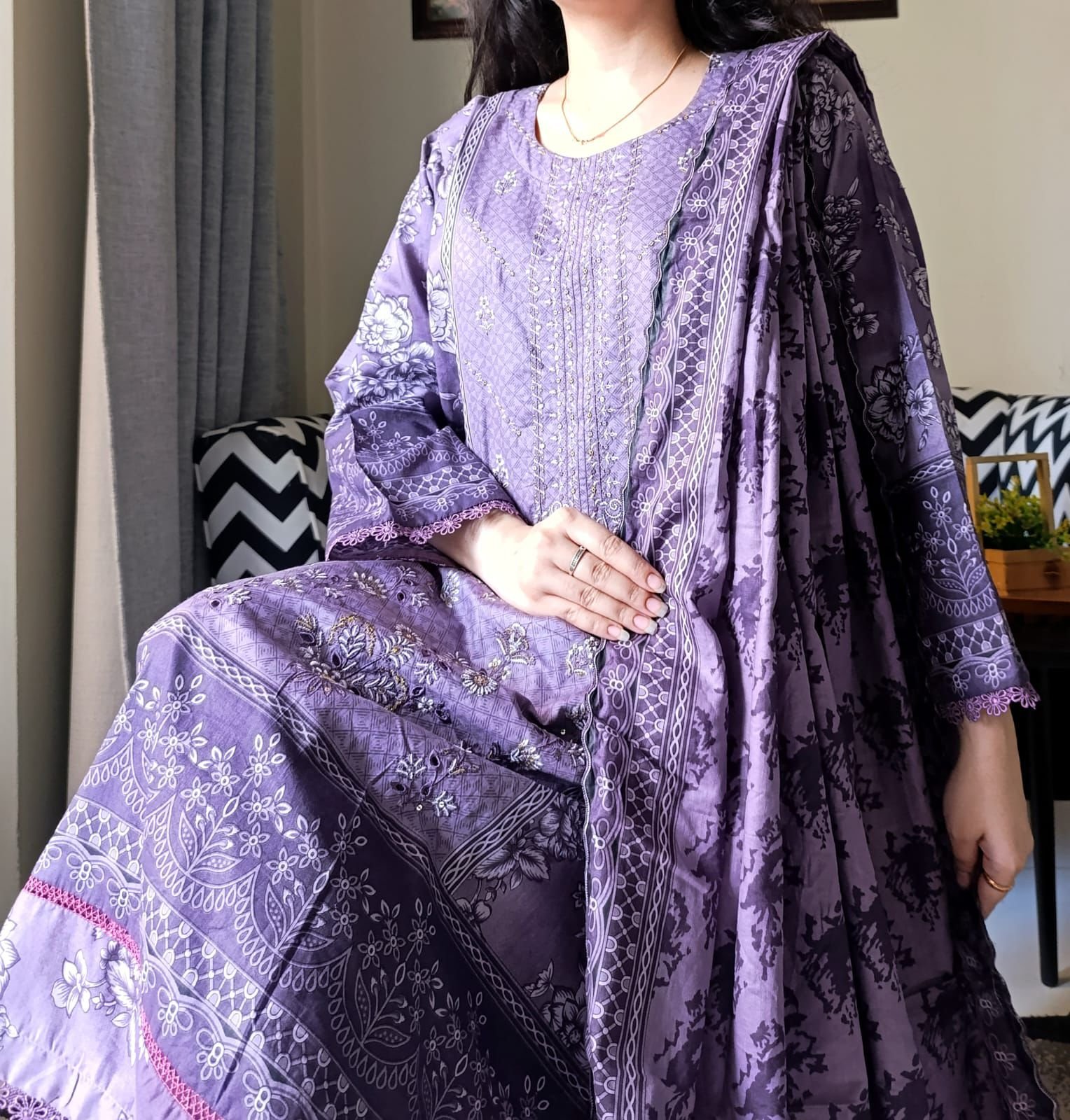 PURE LAWN 90/70 EMBROIDERD 3PC WITH LAWN DUPATTA